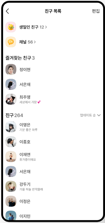 이렇게 하면 예전처럼 친구 목록 중심의 화면으로 다시 돌아옵니다.